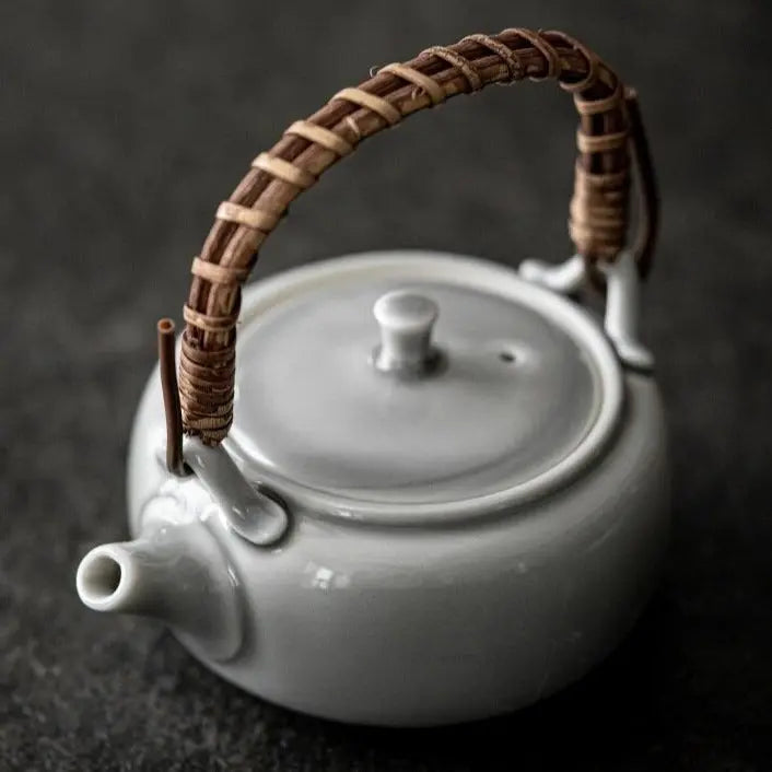 Tauchen Sie ein in die Eleganz und Einfachheit mit dieser japanischen Teekanne aus Porzellan, inspiriert von der japanischen Tradition. Ihr zeitloses Design bringt einen Hauch von Raffinesse in Ihre Teeroutine. Die graue Farbe und ihr Weidengriff bieten eine perfekte Mischung aus Charme und Natürlichkeit. Pflegen Sie diese Japanische Teekanne sorgfältig, um sie dauerhaft genießen zu können.