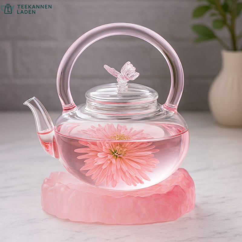 Entdecke unsere Rosa Glas Teekanne mit Schmetterling 700ml