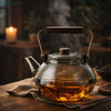 Die Glaskanne mit Punkten und Holzgriff 1L, ein praktischer Glasinfusor für Ihre Lieblingstees.