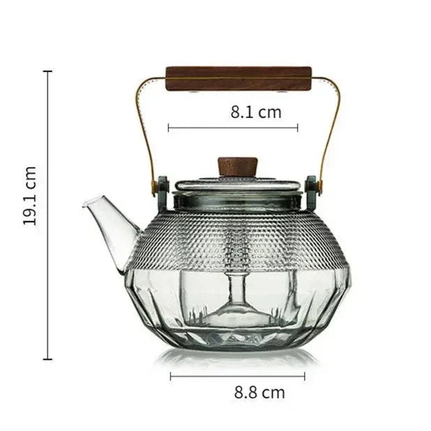 Material: Borosilikatglas Kapazität: 1 Liter Design: Erhabene Muster und Holzgriff Funktionalität: Inklusive Glasinfusor
