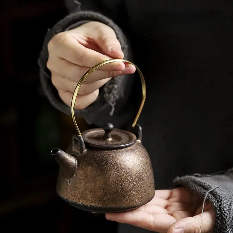Eine 200ml Vintage Japanische Keramik Teekanne, bereit, Ihre Teemomente zu verschönern.