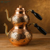 Türkische Teekanne mit Doppelstufe aus Kupfer und schwarzem Griff