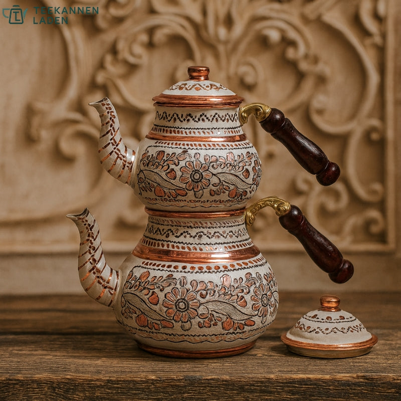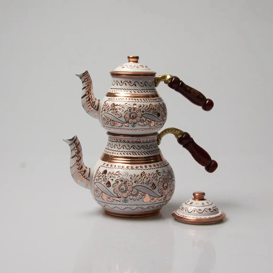 Entdecken Sie die Weiße Türkische Teekanne aus Kupfer mit Doppelstufe
